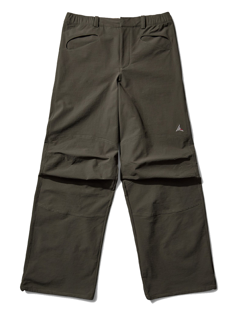 Pantaloni verde oliva Tambo Shaped Softshell di Roa in poliammide con vita elasticizzata, chiusura frontale con bottone, tasche frontali tonde, tasca posteriore con zip e orlo regolabile.