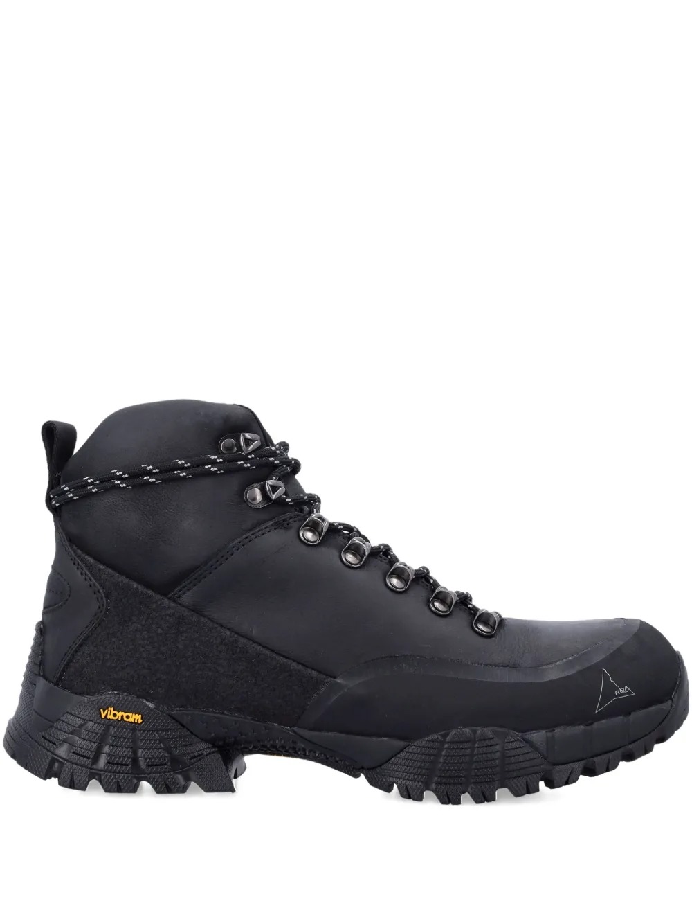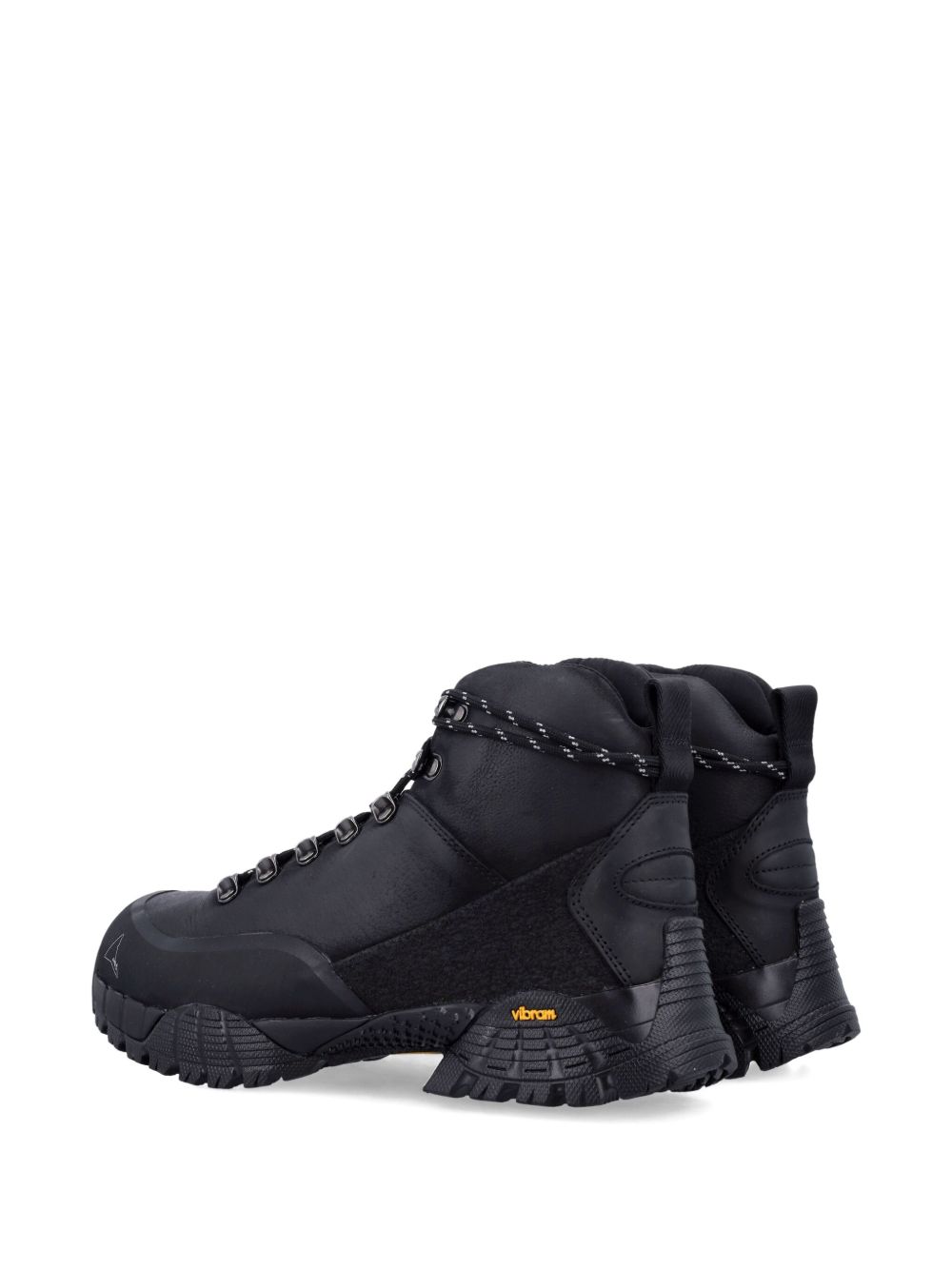 Stivali neri Andreas di Roa in pelle con chiusura frontale con lacci, designa inserti e suola in vibram dentellata.