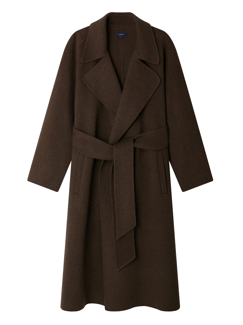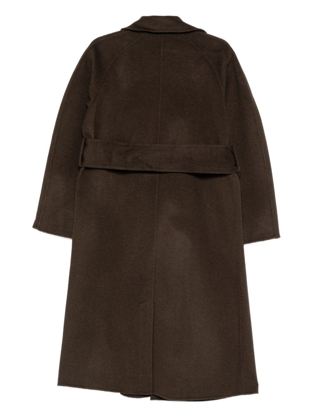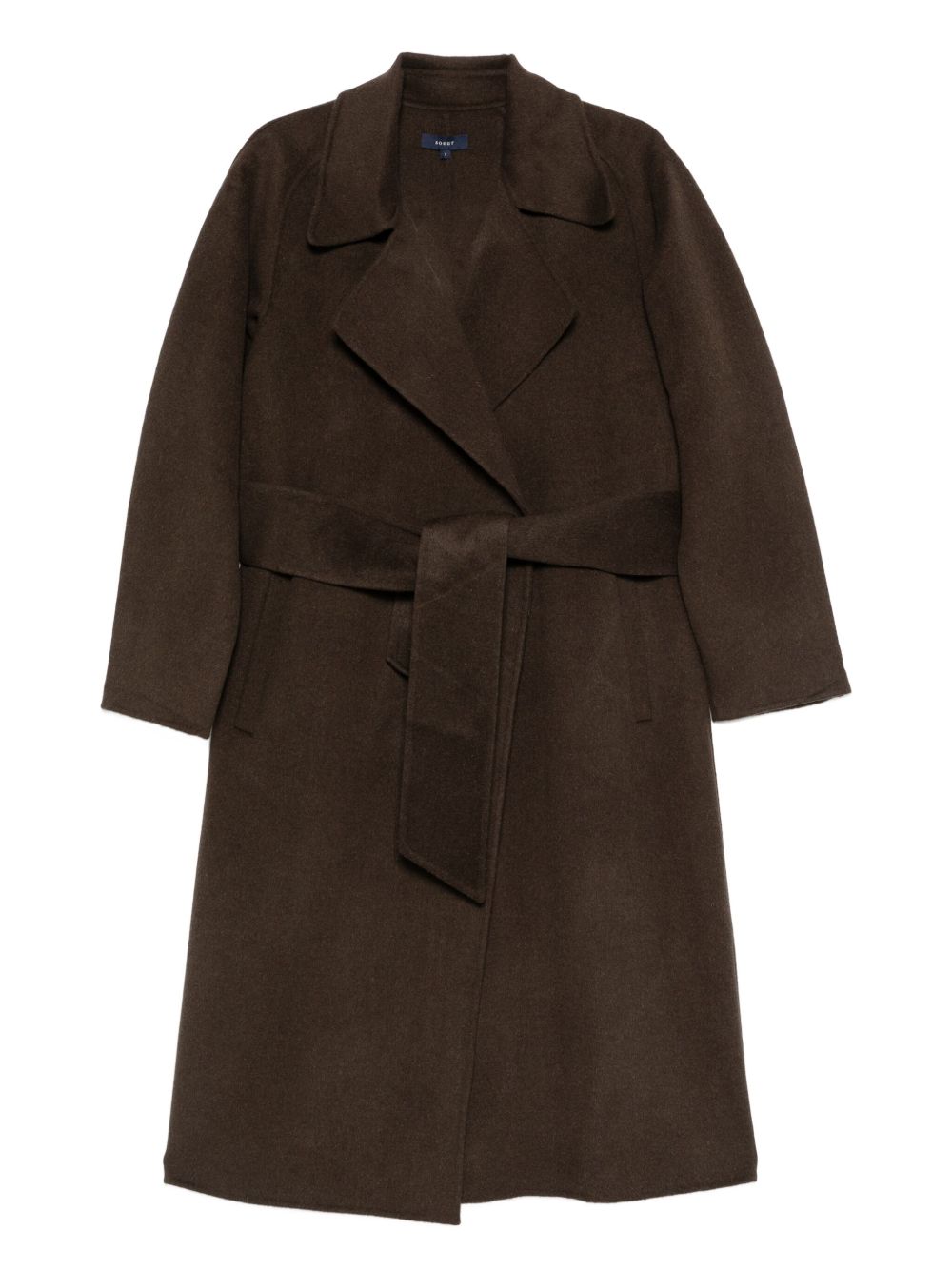 Cappotto marrone khaki Harvard di Soeur in lana con colletto ambio, cintura removibile, tasche laterali e orlo dritto.