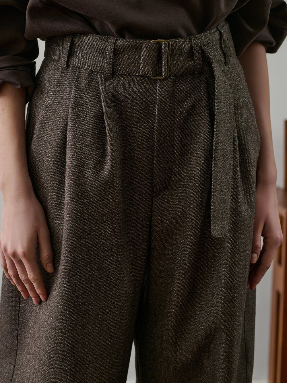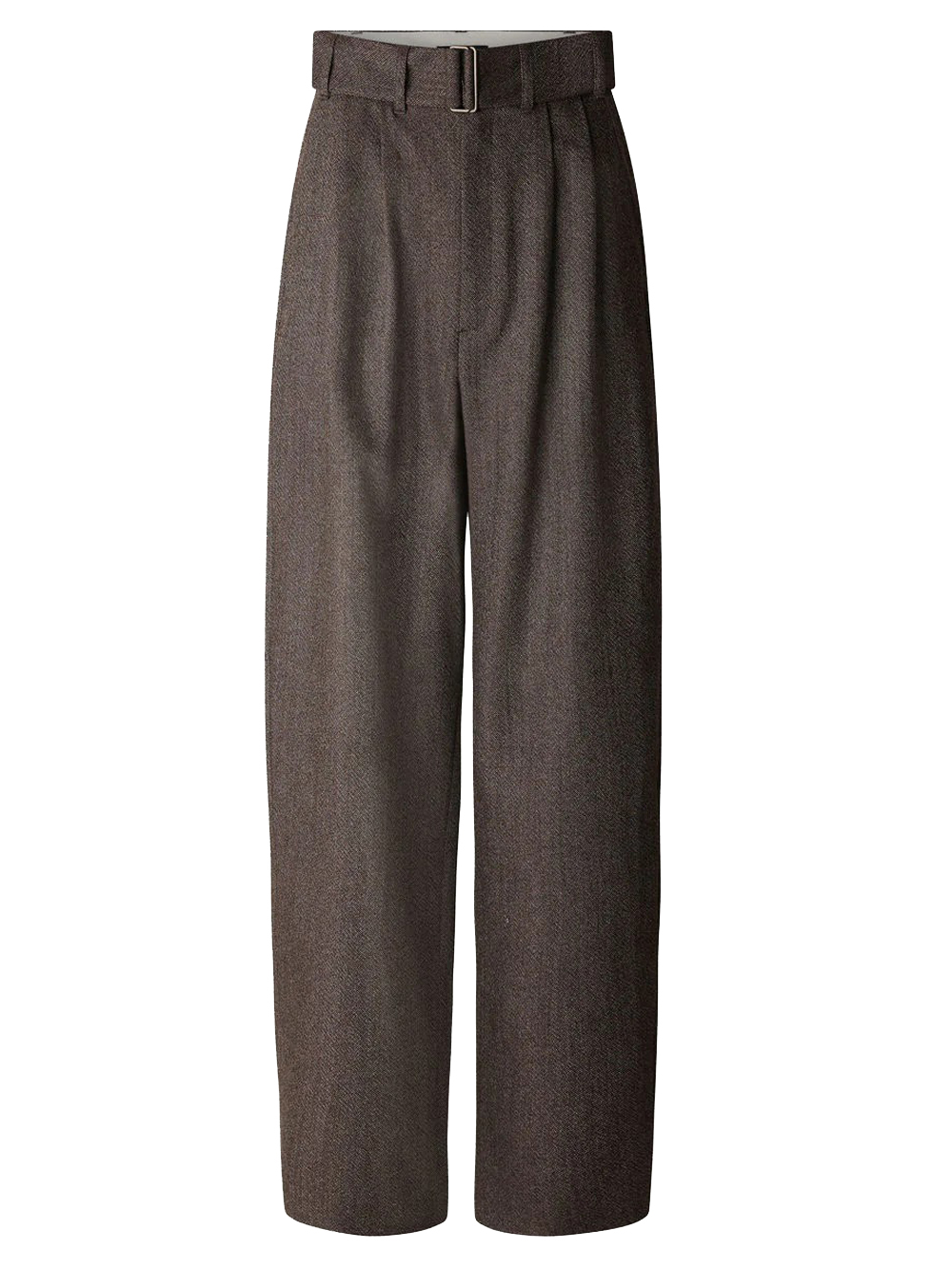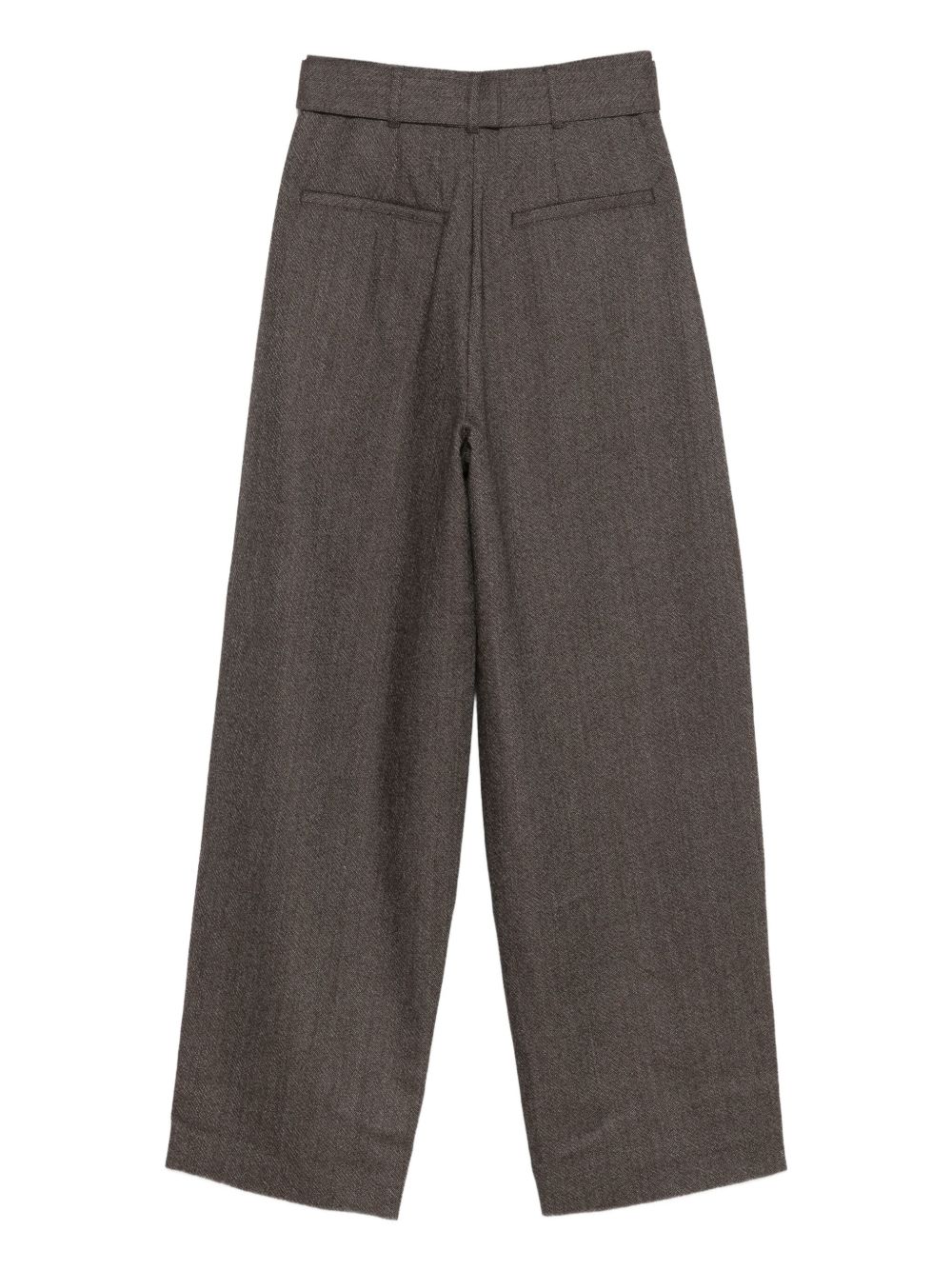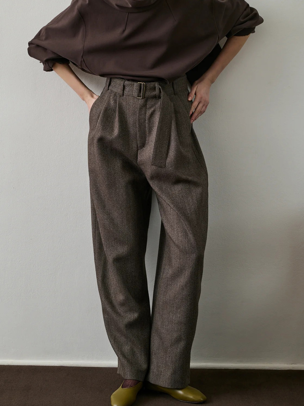 Pantaloni marroni ecru Cole di Soeur in lana con vita con passanti, cintura rimobile e orlo dritto.