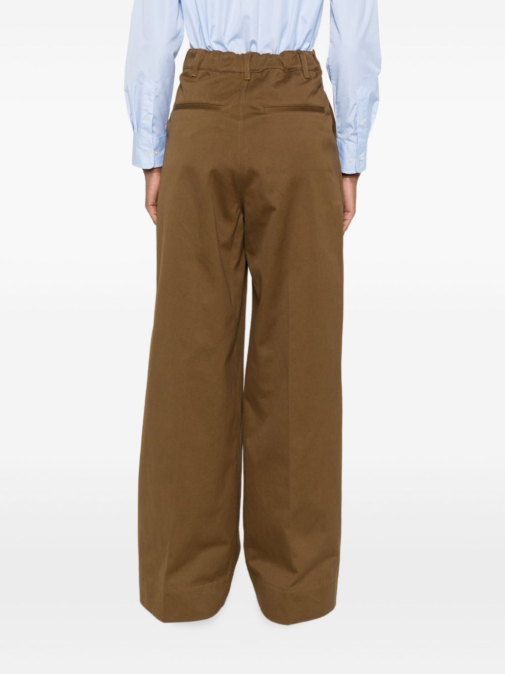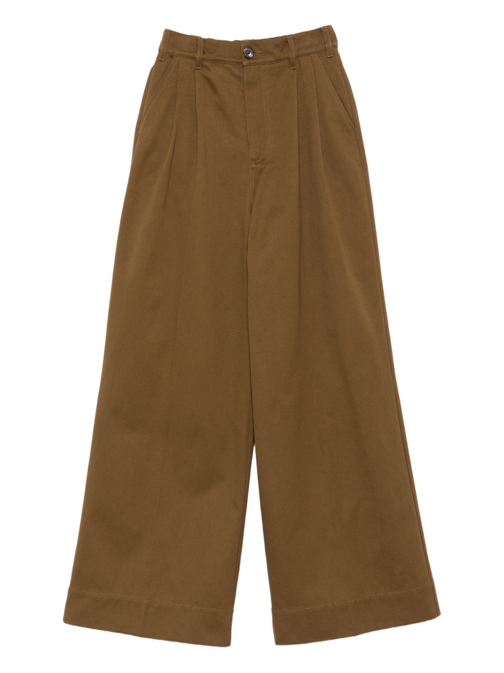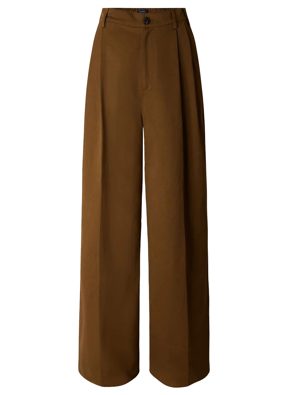 Pantaloni khaki bronzo Frejus di Soeur in lana con vita con passanti, chisura frontale con bottone e zip nascosta. tasche laterali e posteriori a filetto e orlo dritto.