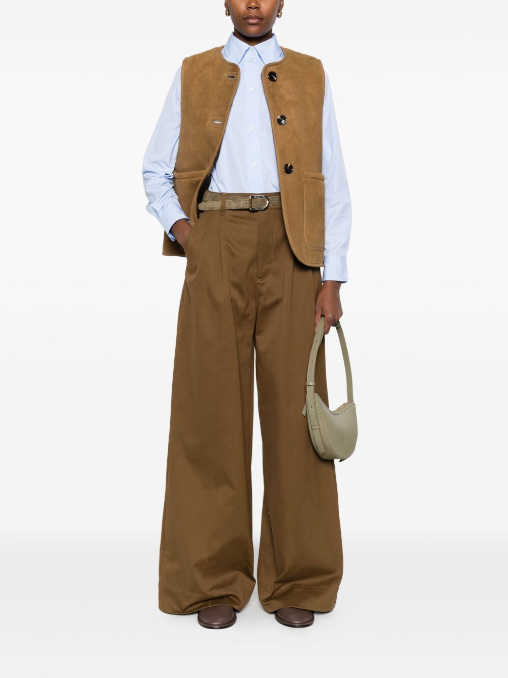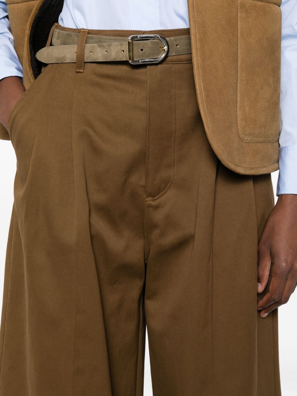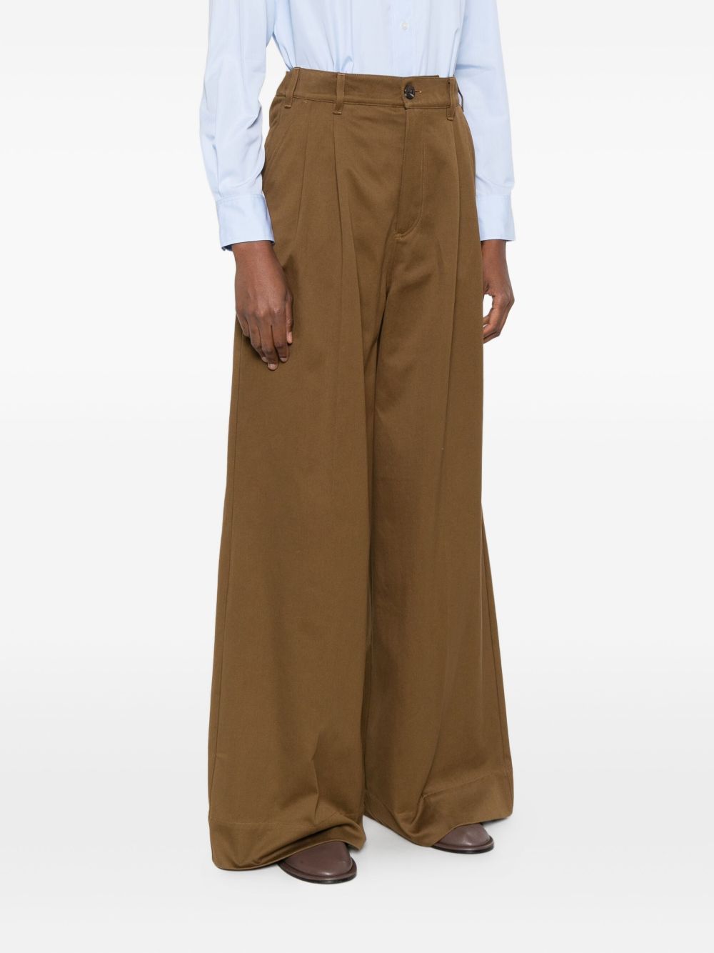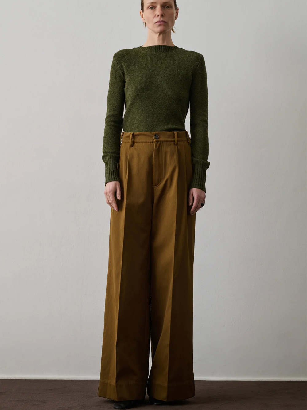 Pantaloni khaki bronzo Frejus di Soeur in lana con vita con passanti, chisura frontale con bottone e zip nascosta. tasche laterali e posteriori a filetto e orlo dritto.
