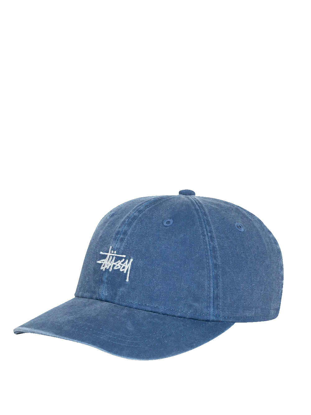 Cappello a sei pannelli a profilo basso in twill di cotone lavato. Logo Stüssy basic stock ricamato sulla corona.