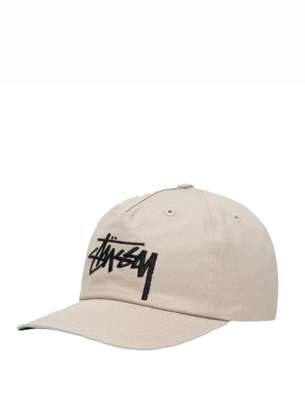 Cappello a cinque pannelli di media profondità in twill di cotone lavato, logo Stüssy ricamato.