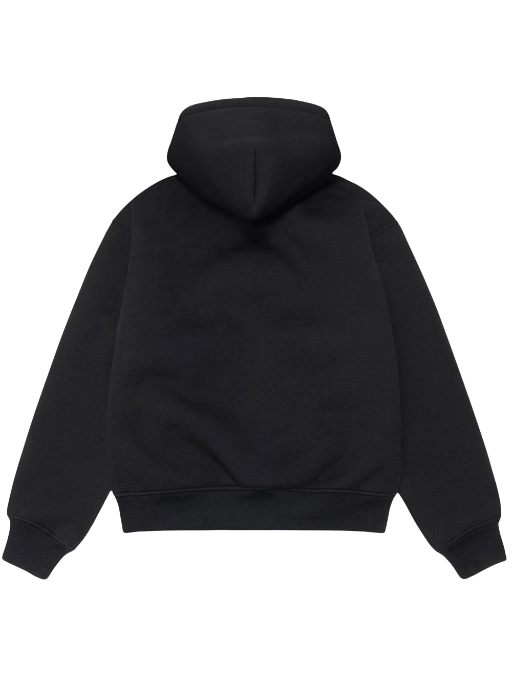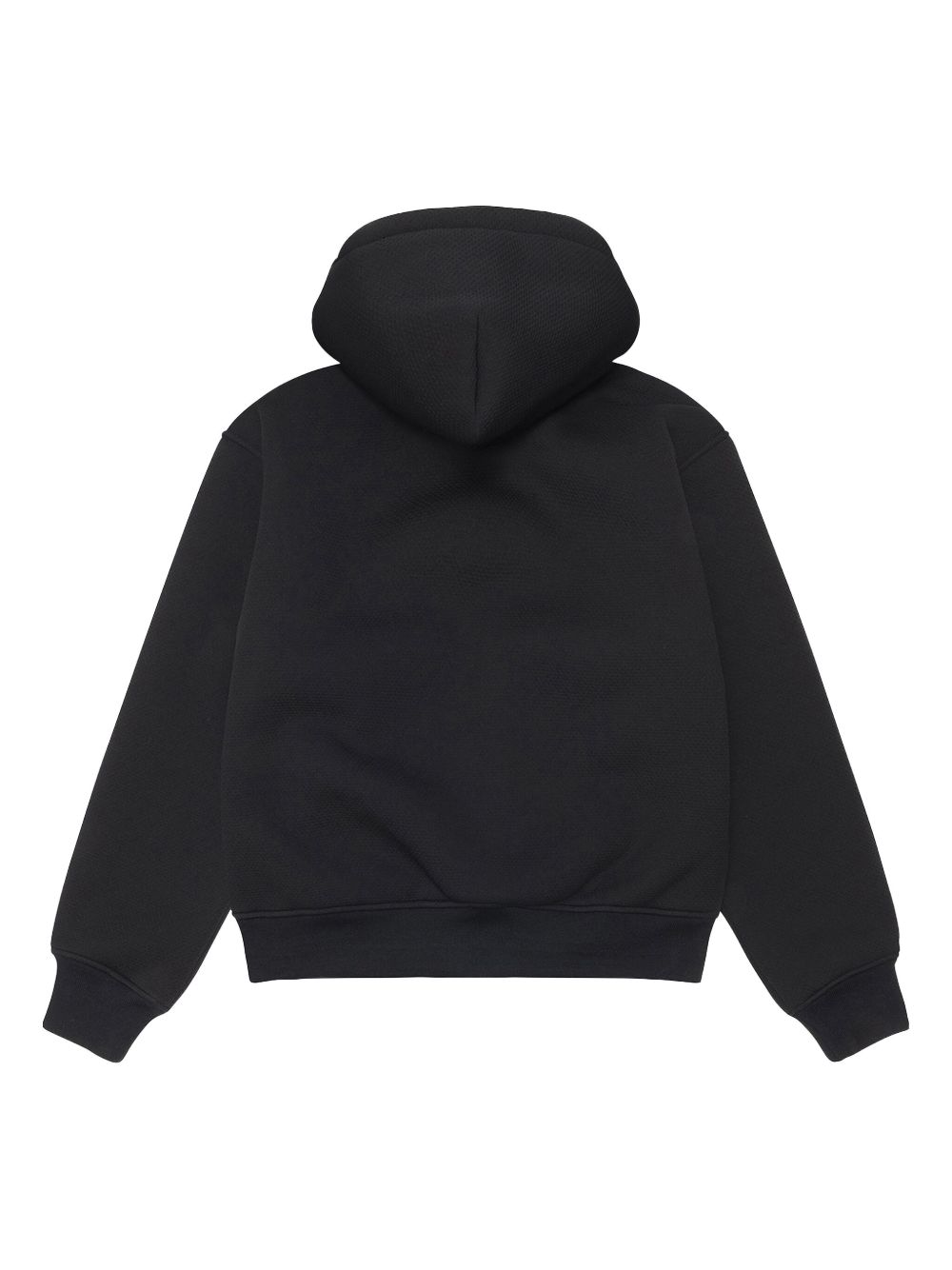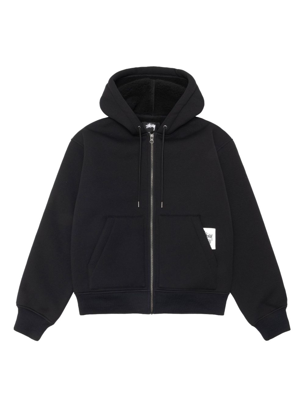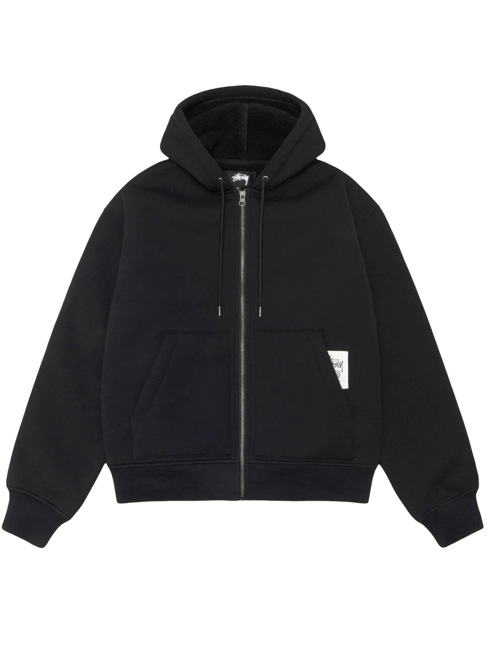 Felpa vestibilità rilassata con zip e tasche laterali, interno in sherpa accoppiato, cordino rotondo nel cappuccio.