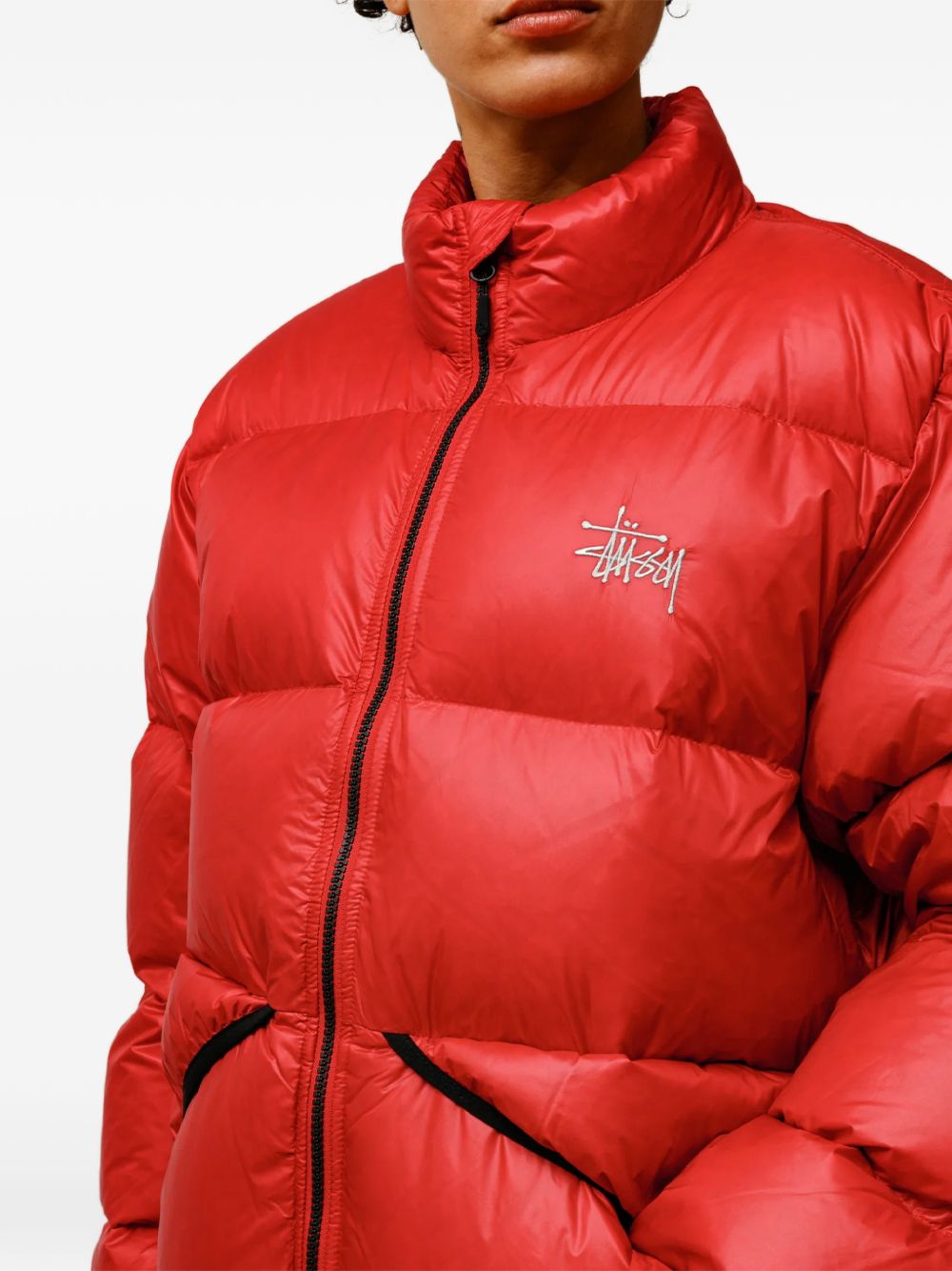 Giacca imbottita dal taglio classico con collo alto in nylon micro ripstop, imbottitura in piuma trapuntata 800 fill, chiusura con zip YKK in metallo, logo Stüssy basic ricamato sul petto, tasche con bordi in lycra e chiusura con zip nascosta, polsini elasticizzati, cordino regolabile sull'orlo, pattina antivento interna, tasca interna verticale con zip, tasche interne in rete.