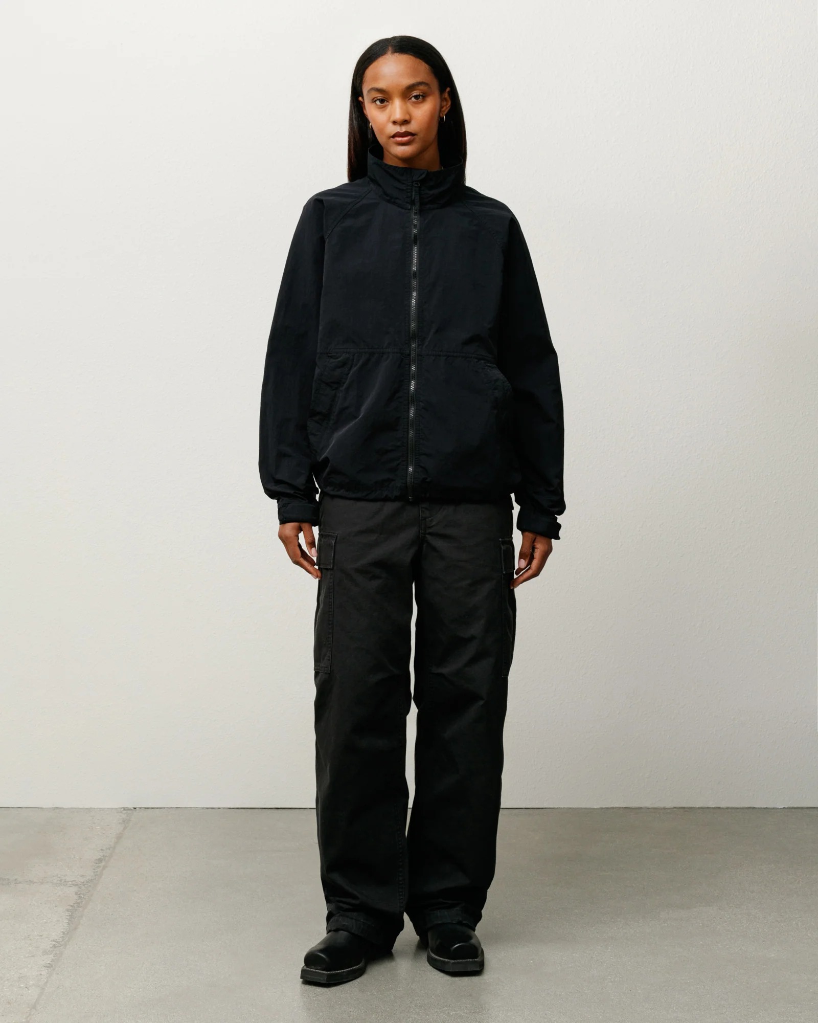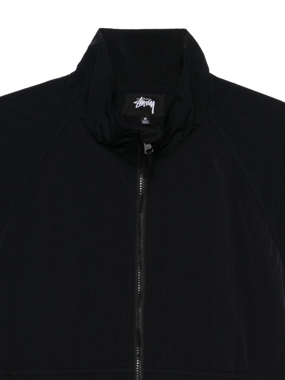 Giacca shell dalla vestibulità comoda, nylon ripstop, maniche raglan, chiusura con zip YKK VISLON® con protezione, polsini elasticizzati con linguette in velcro regolabili, tasche a filetto con zip nascoste, cordino regolabile sull'orlo, Logo Stüssy liscio tono su tono stampato sul retro. spacco posteriore con pannello interno in rete.