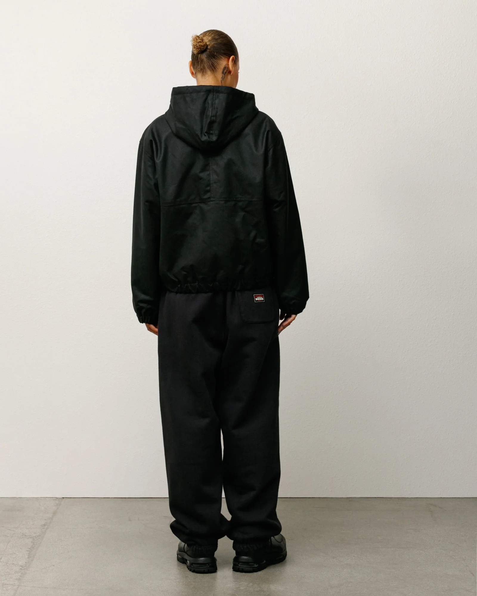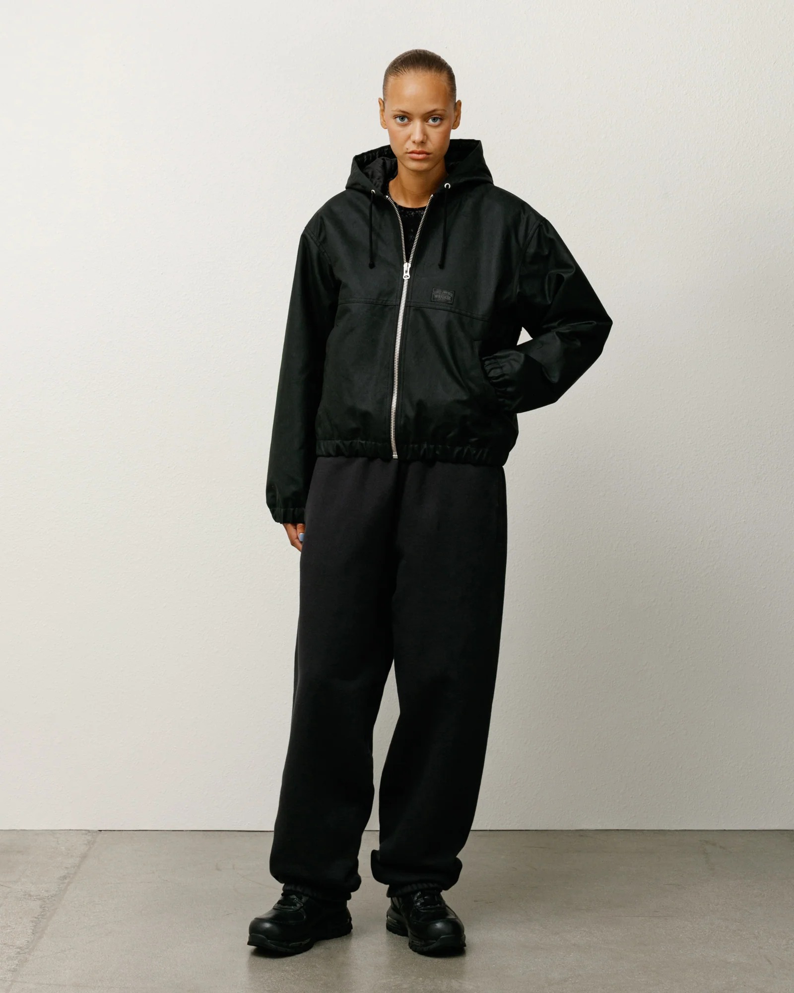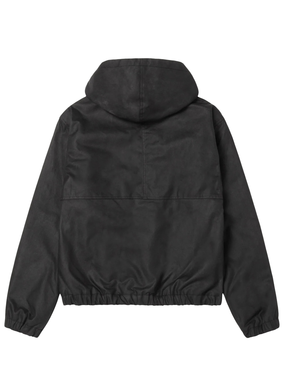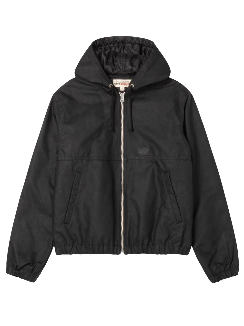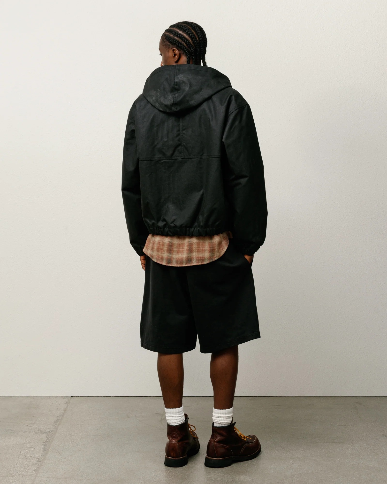 Giacca dal taglio boxy con cappuccio, cotone cerato Halley Stevensons, fodera trapuntata leggermente imbottita, chiusura con zip in metallo YKK.