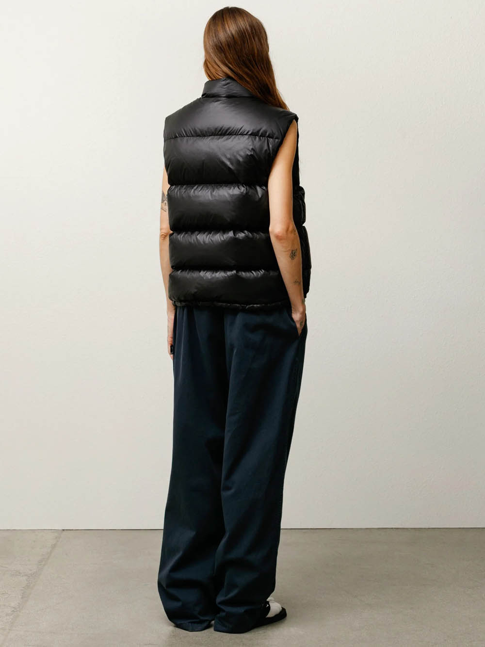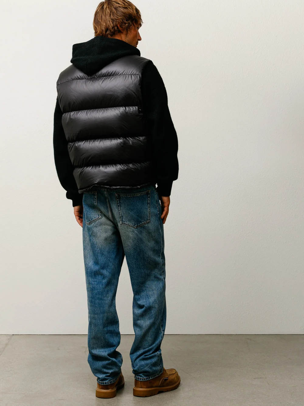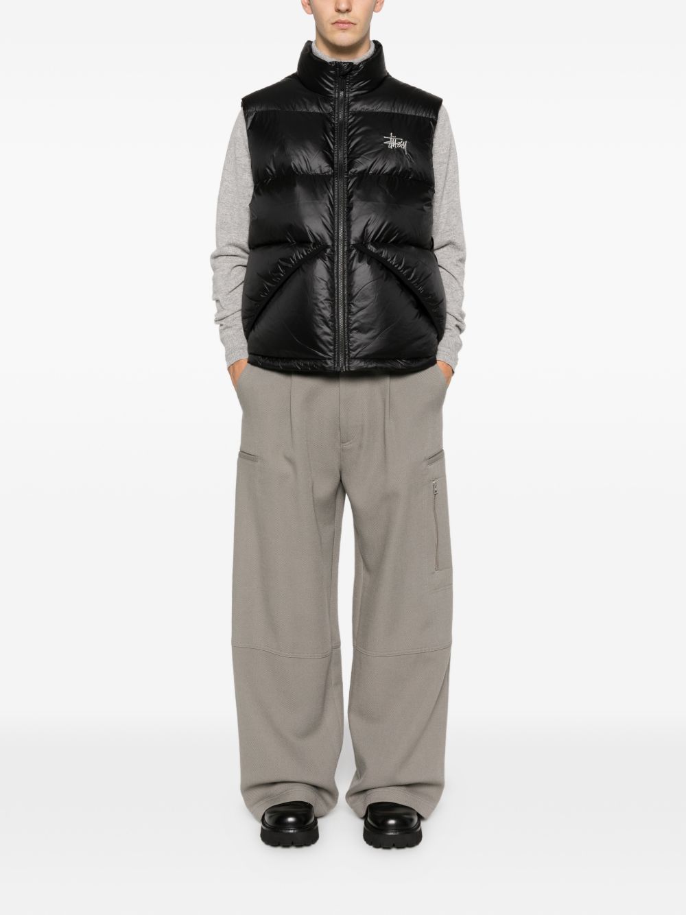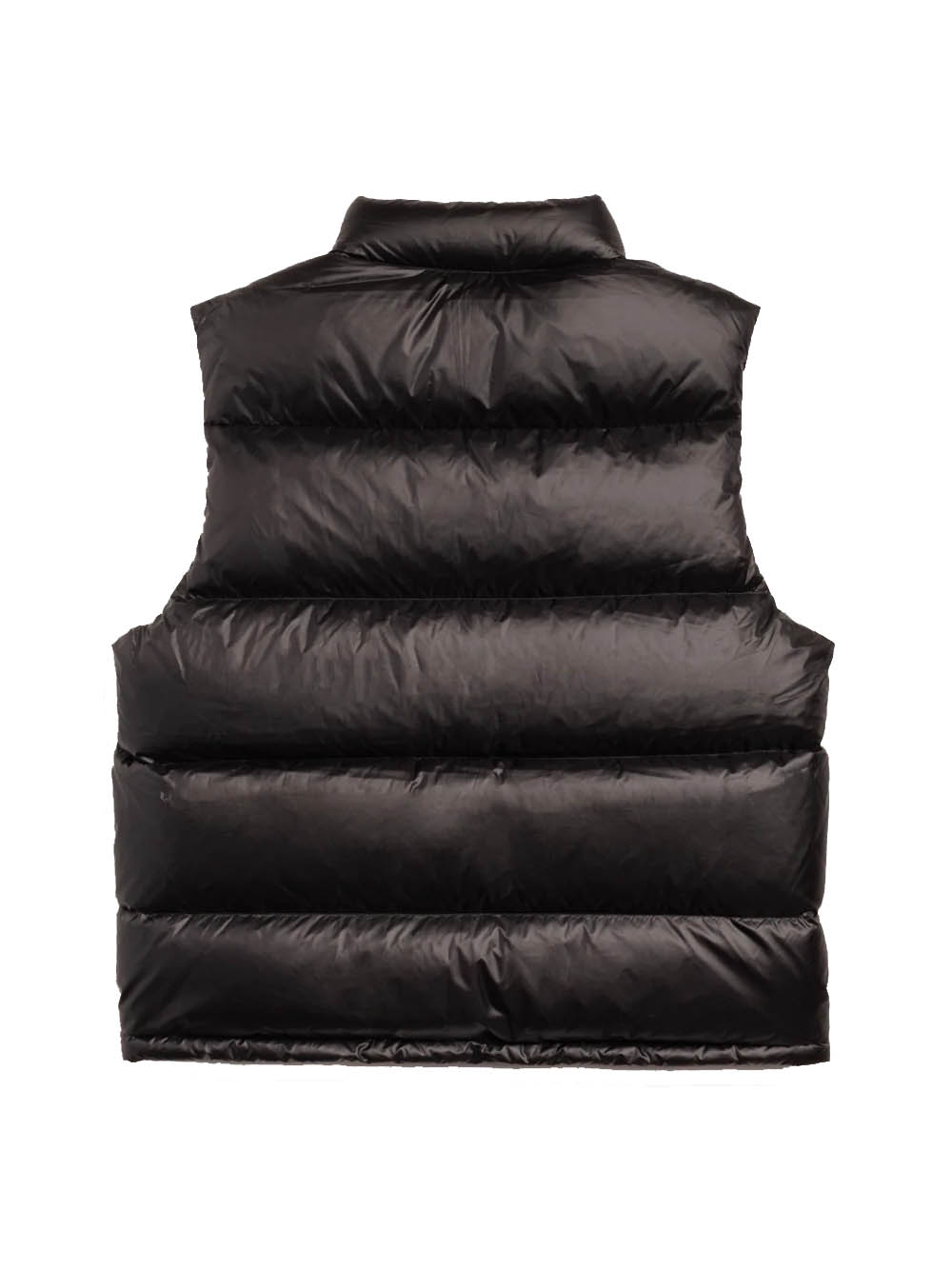 Gilet imbottito dal taglio classico con collo alto in nylon micro ripstop, imbottitura in piuma trapuntata 800 fill, chiusura con zip YKK in metallo, logo Stüssy basic ricamato sul petto, tasche con bordi in lycra e chiusura con zip nascosta, pattina antivento interna, tasca interna verticale con zip, tasche interne in rete.