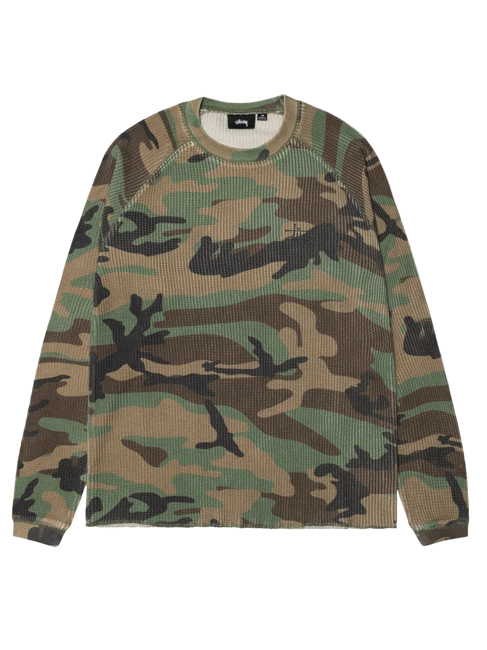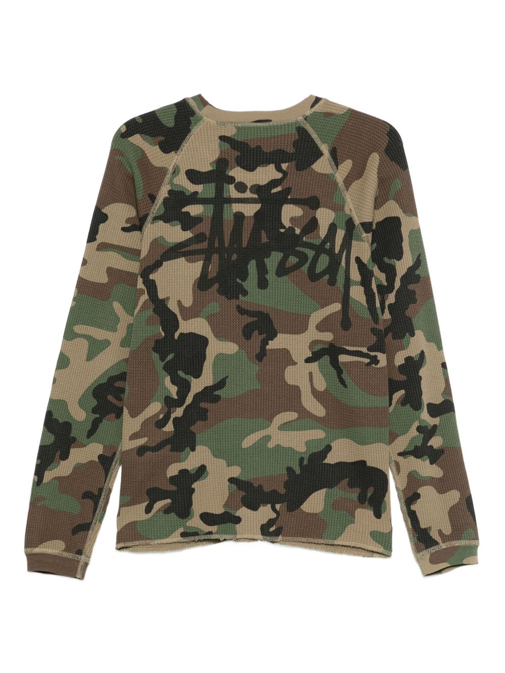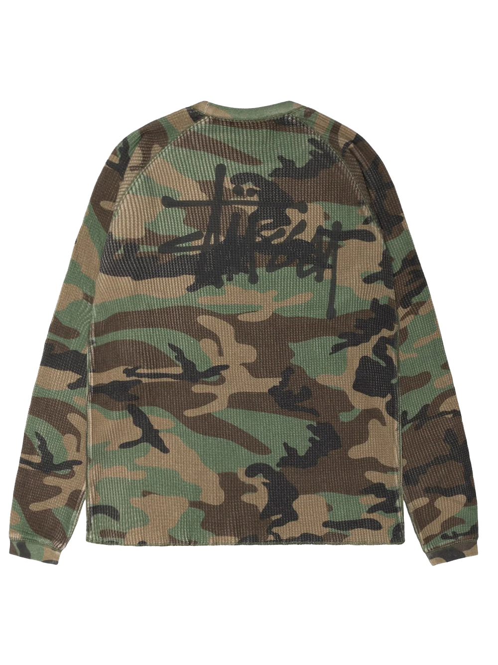 Maglia termica rilassata in cotone a nido d'api Logo Stüssy basic stock stampato sul petto a sinistra e sulla schiena.