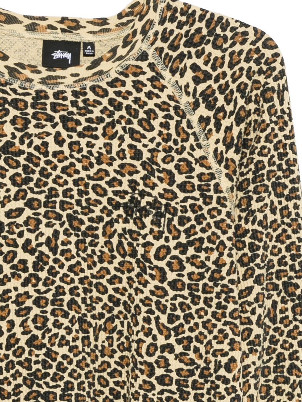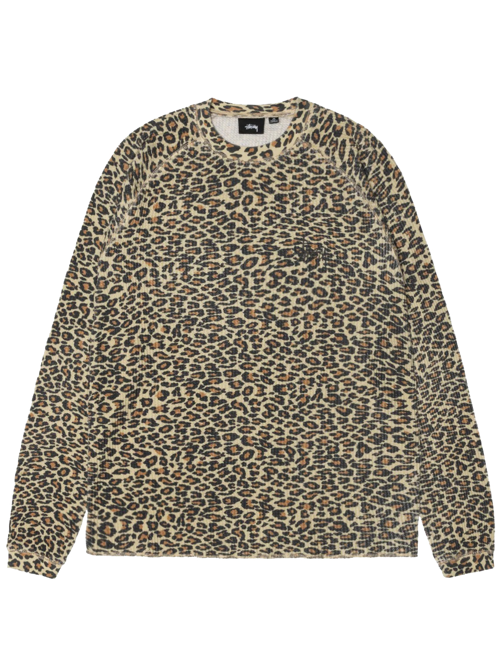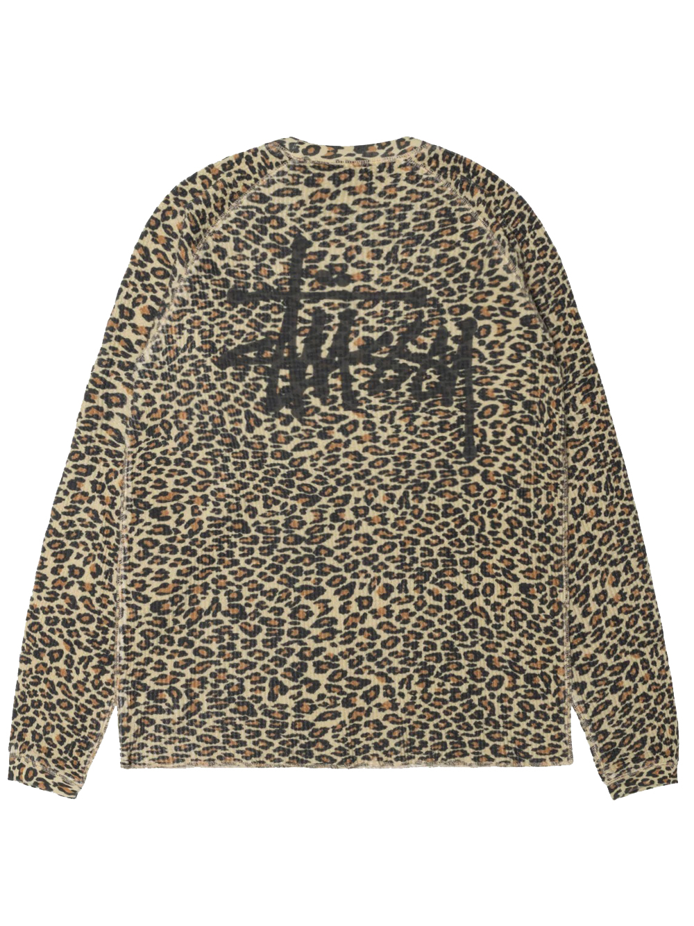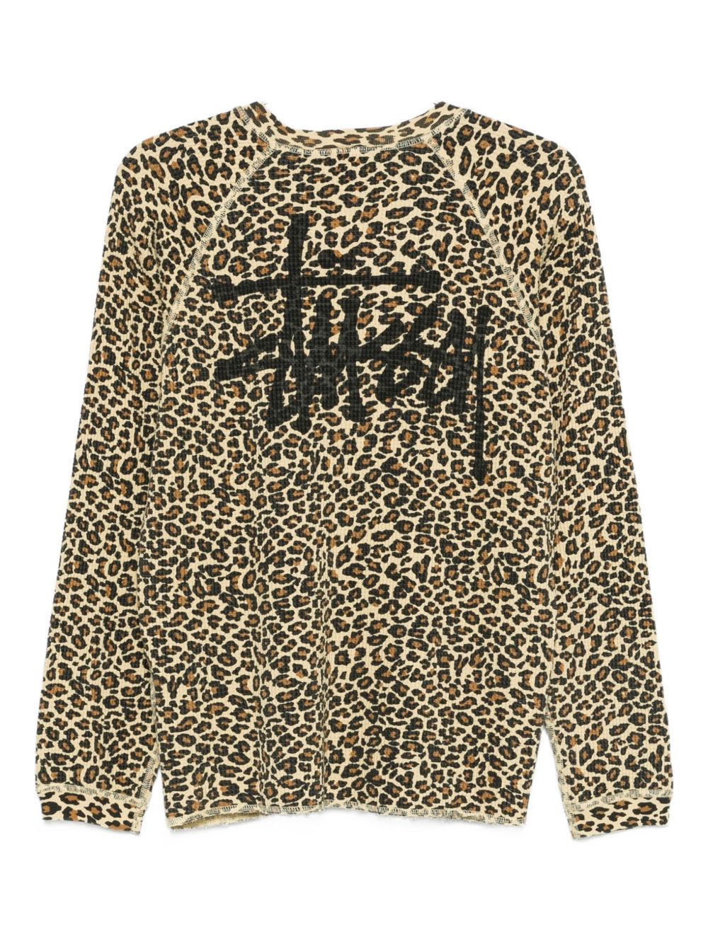 Maglia termica rilassata in cotone a nido d'api Logo Stüssy basic stock stampato sul petto a sinistra e sulla schiena.