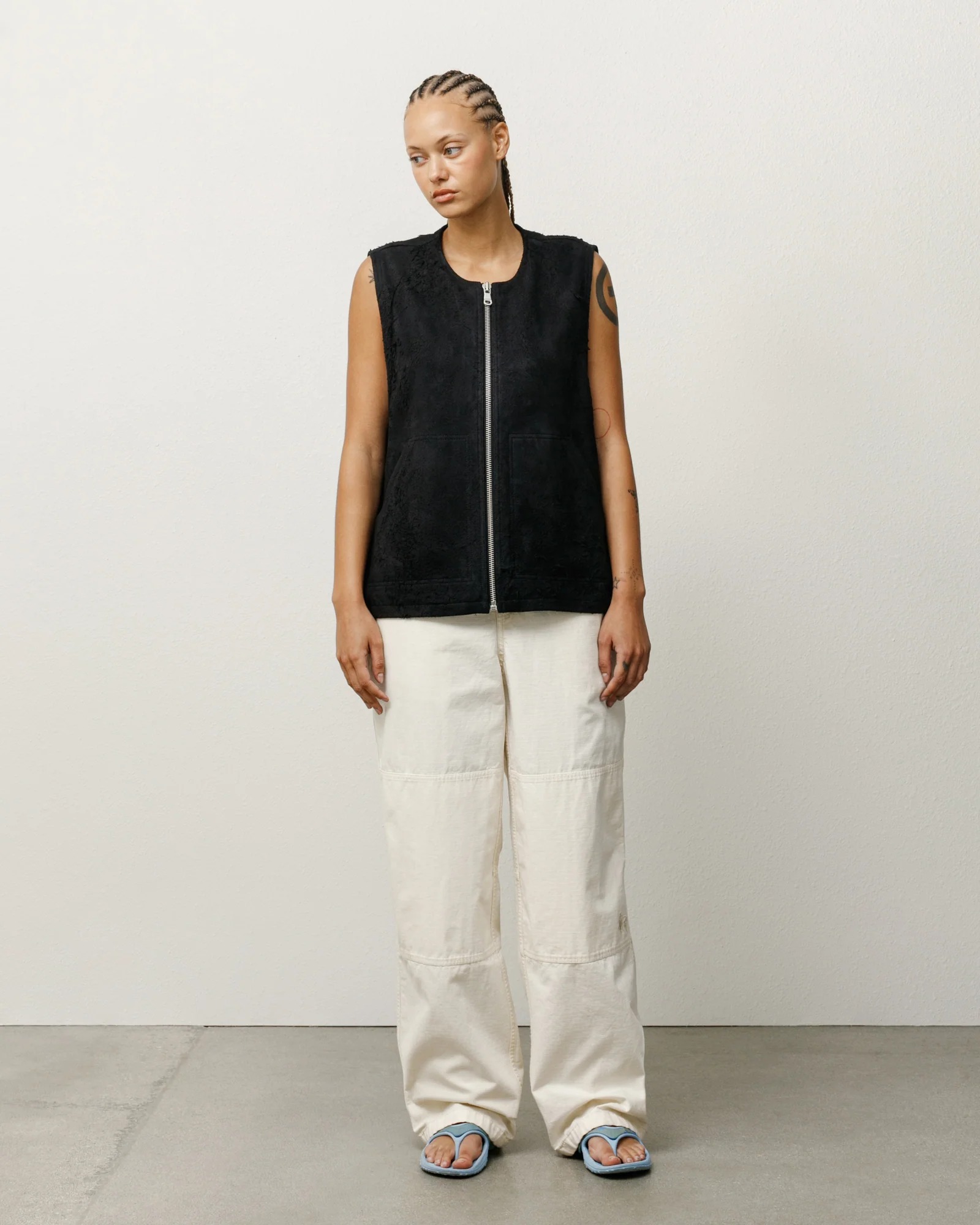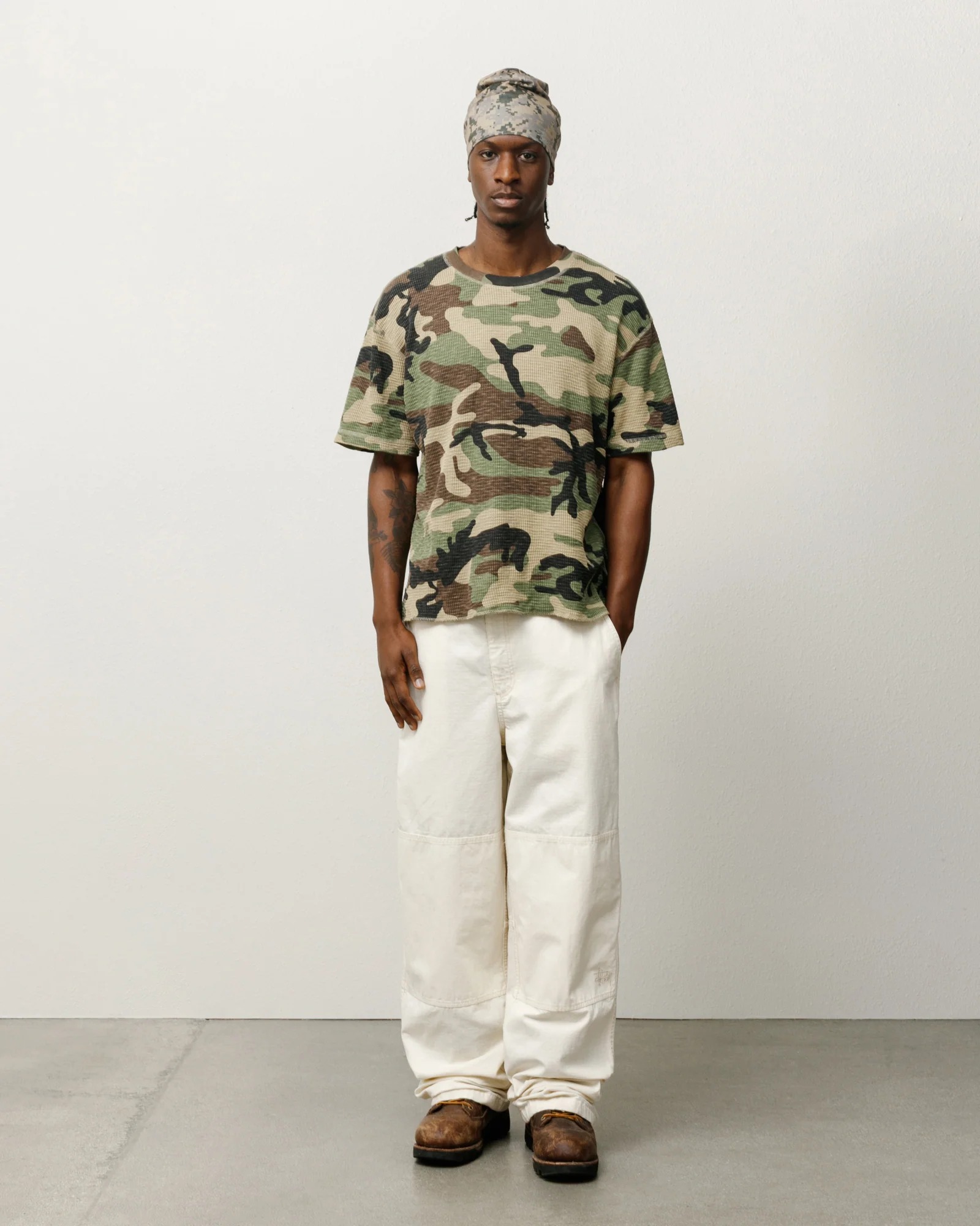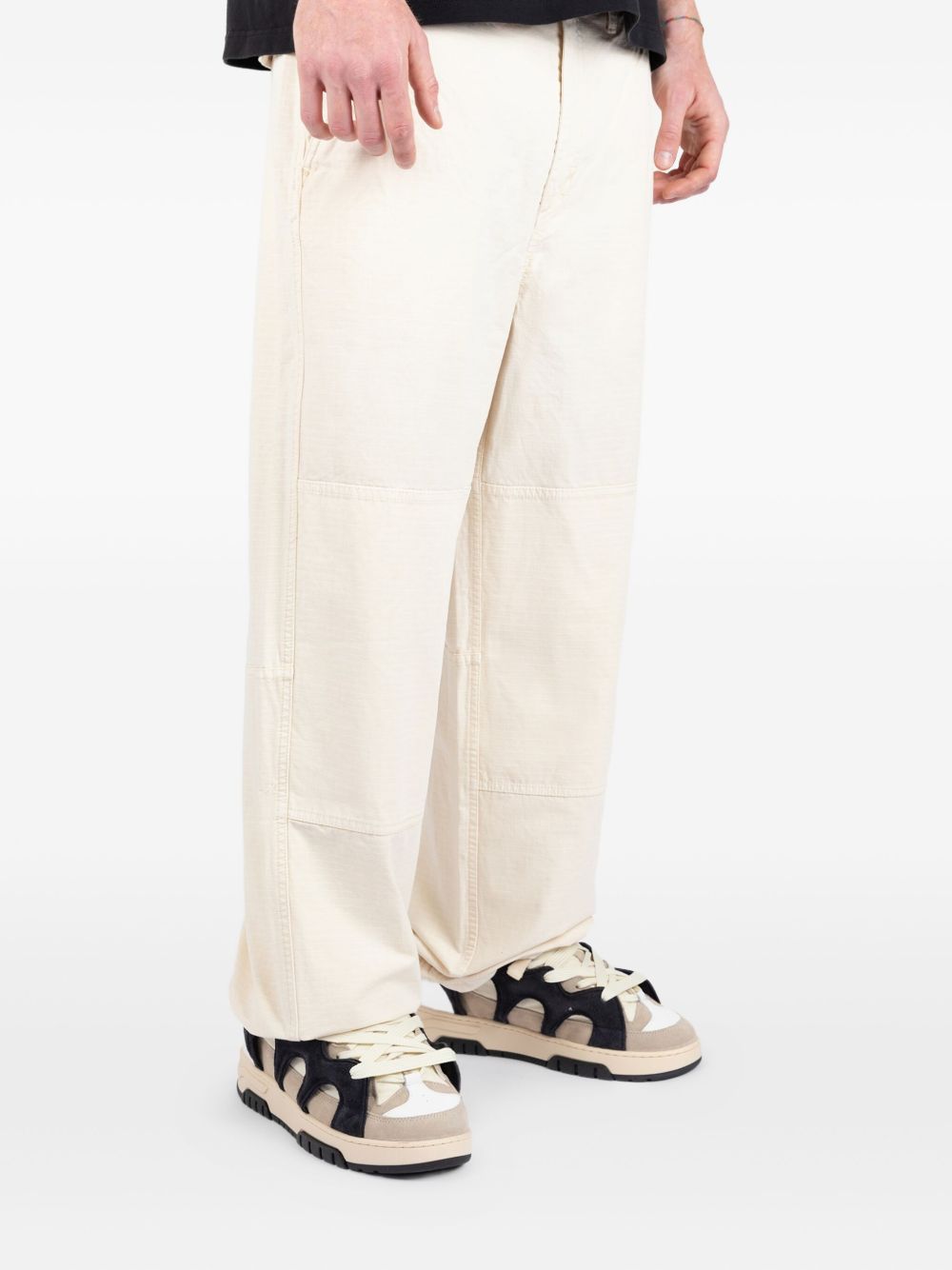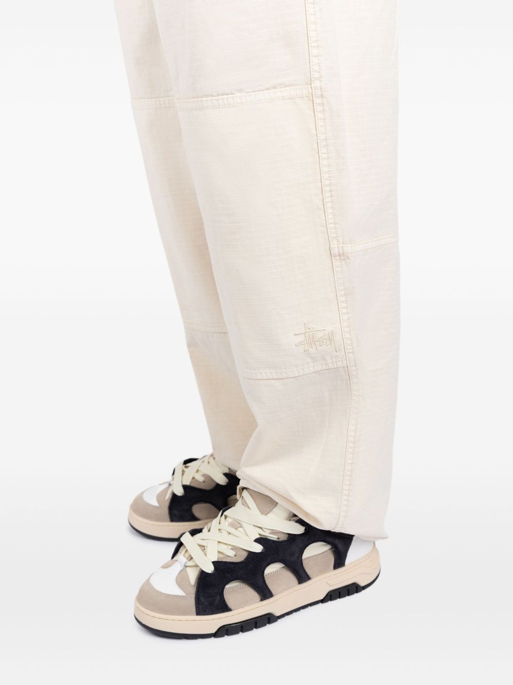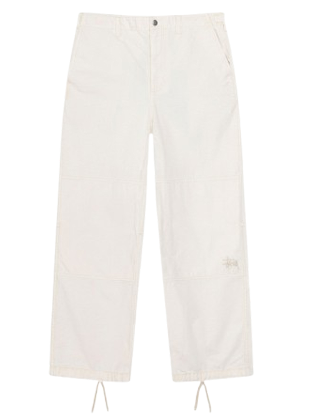 Pantalone tinto in capo dalla vestibilità rilassata in cotone ripstop lavato. Presenta pannelli rinforzati sulle ginocchia, linguette regolabili in vita e coulisse sull'orlo. Logo Stüssy basic ricamato in tonalità sul ginocchio sinistro.
