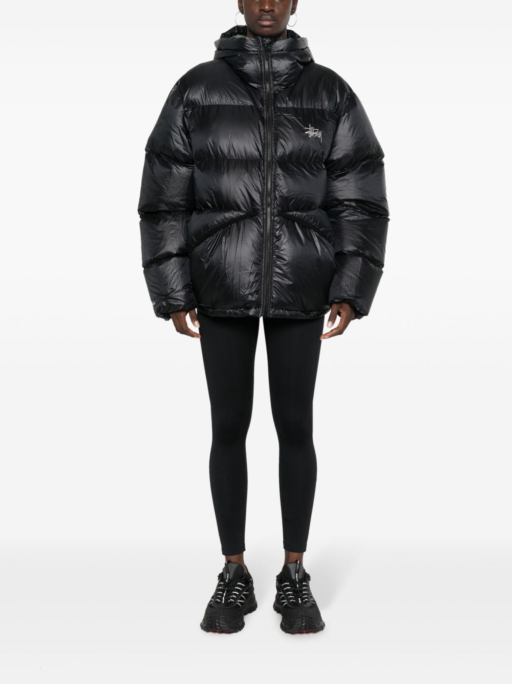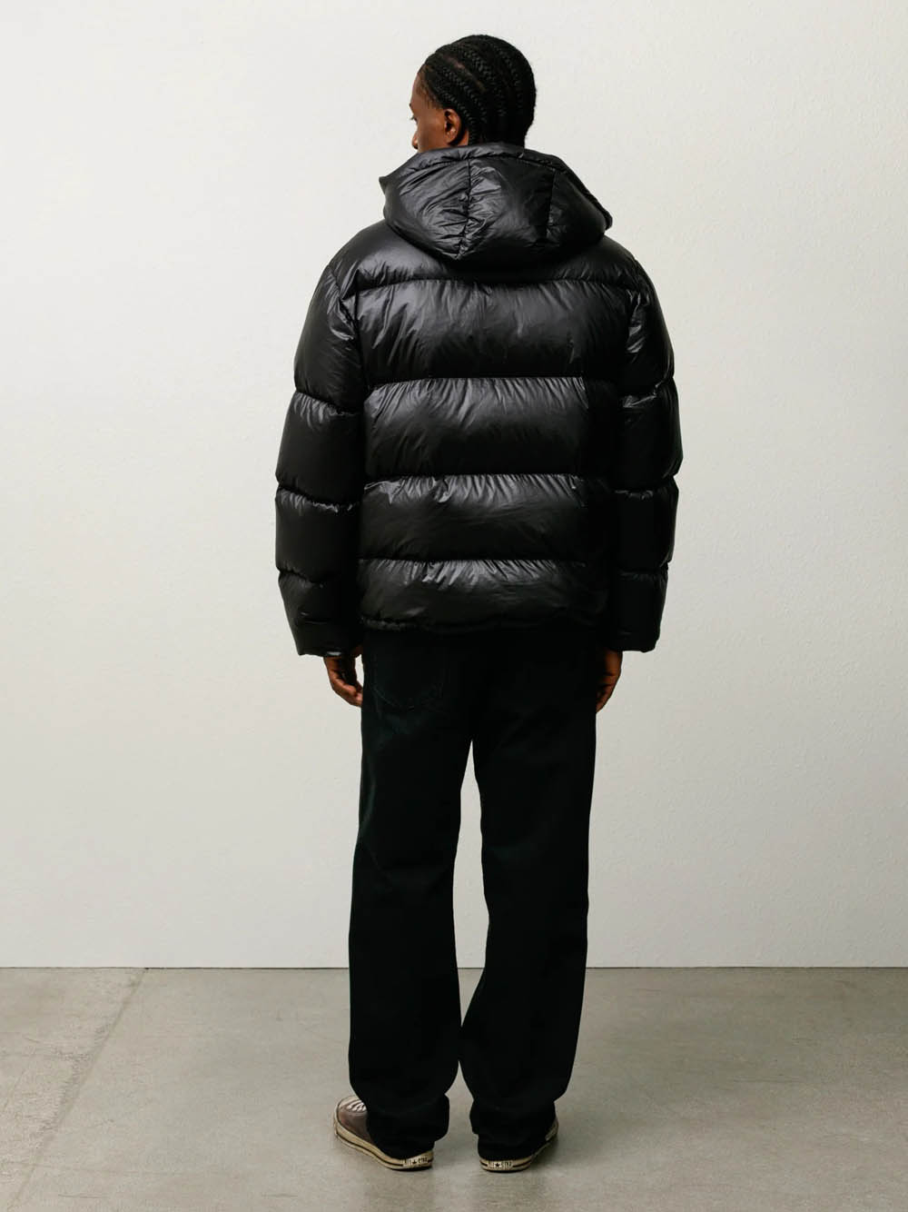 Parka con cappuccio, imbottitura in piuma trapuntata 800 fill. cordini regolabili sul cappuccio e sull'orlo, chiusura con zip YKK VISLON®, logo Stüssy basic ricamato sul petto, tasche con bordi in lycra e chiusura con zip nascosta, polsini elasticizzati, fodera nello stesso tessuto, tasca interna sul petto con zip, e tasche interne in rete.