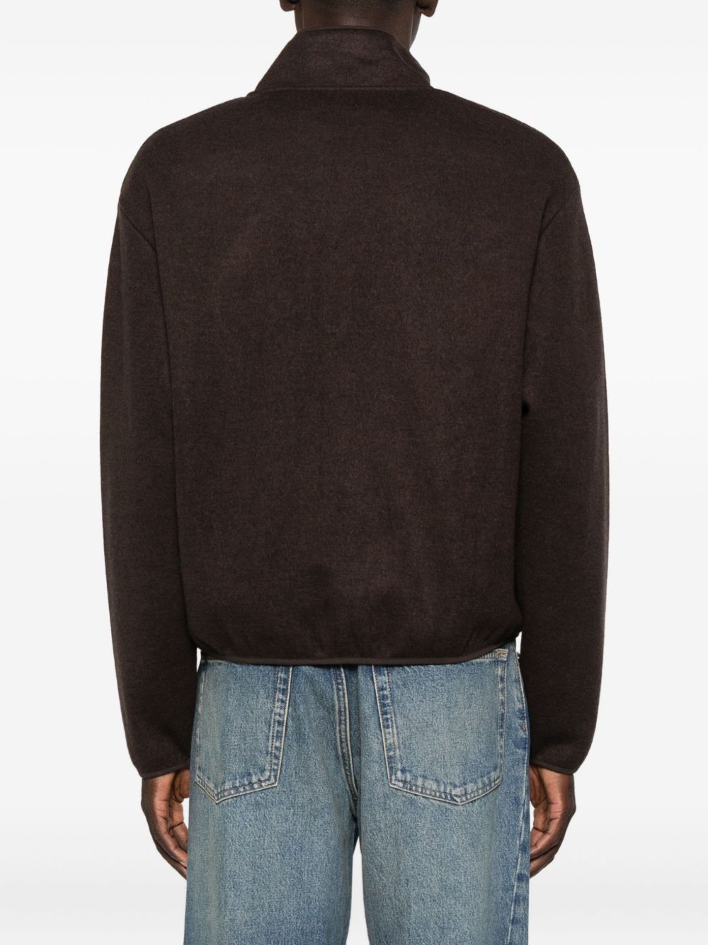 Felpa marrone Wool Half Zip di Sunflwer in lana con mezza zip a spiraler, tasche laterali e bordi rifiniti con nastro.