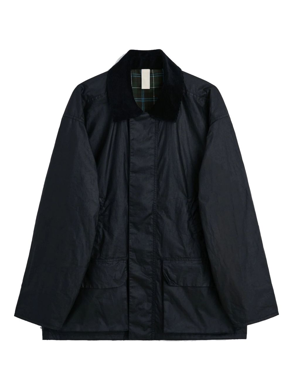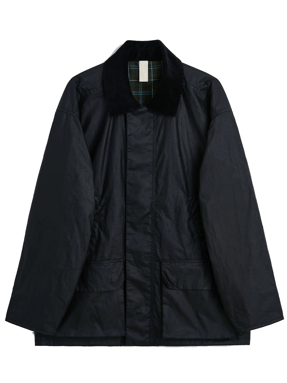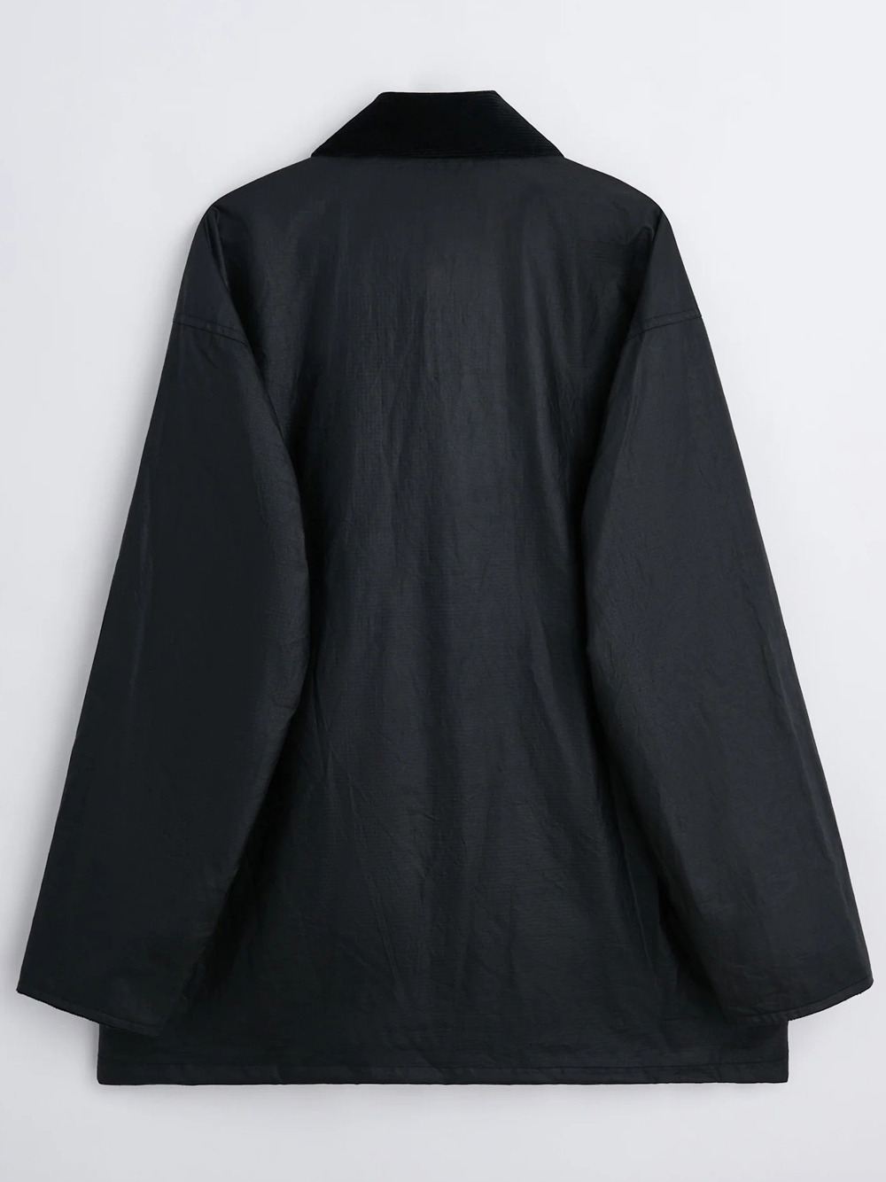 giacca nera Waxed Ripstop Leisure di Sunflower in cotone cerato ripstop con colletto, chiusura frontale con zip a doppio cursore, tasche frontale con patta e fodera a quadri.