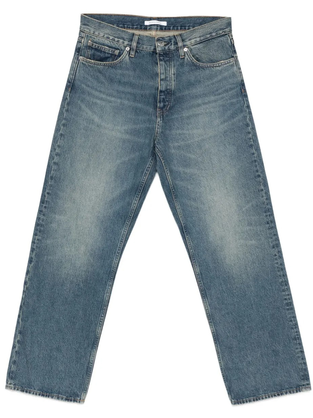 Jeans blu di Sunflower in cotone, con vita con passanti, chiusura frontale con bottone. design 5 tasche e orlo dritto.