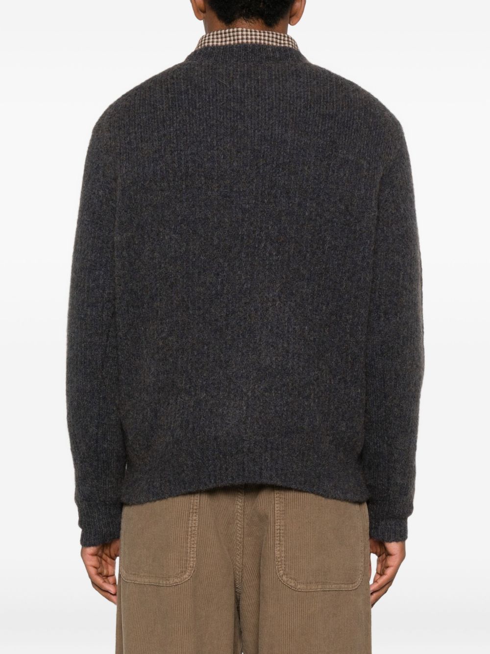 Maglione navy Yak di Sunflower in yak e alpaca con girocollo rinforzato, maglie a coste e orlo dritto.
