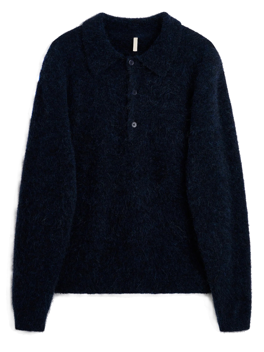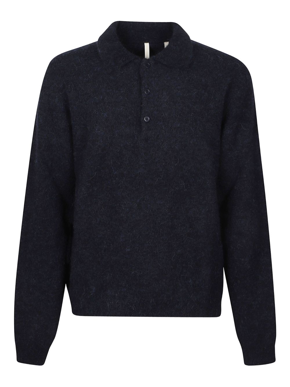 Polo navy di Sunflawer in mohair con colletto classico, apertura a tre bottoni e orlo dritto.